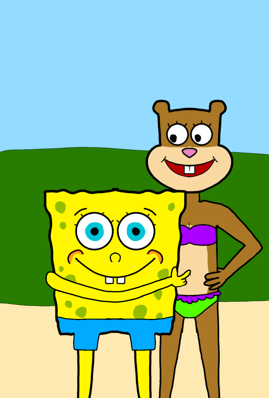 SpongeBob and Sandy having fun at the beach out of Bikini Bottom and SpongeBob begins tickling Sandy's belly button.