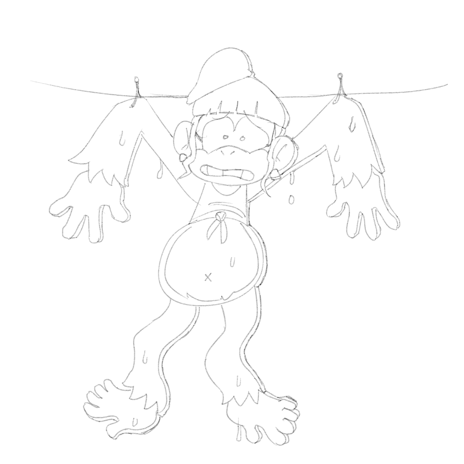 Some monkeys hang from vines, but Dixie's hanging from clothespins~