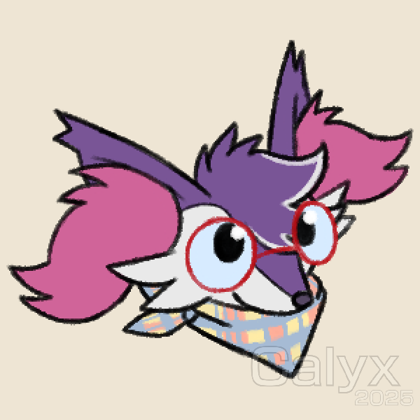 Want to see my art before they're uploaded here? See my Bluesky at calyxthefox . bsky. social !