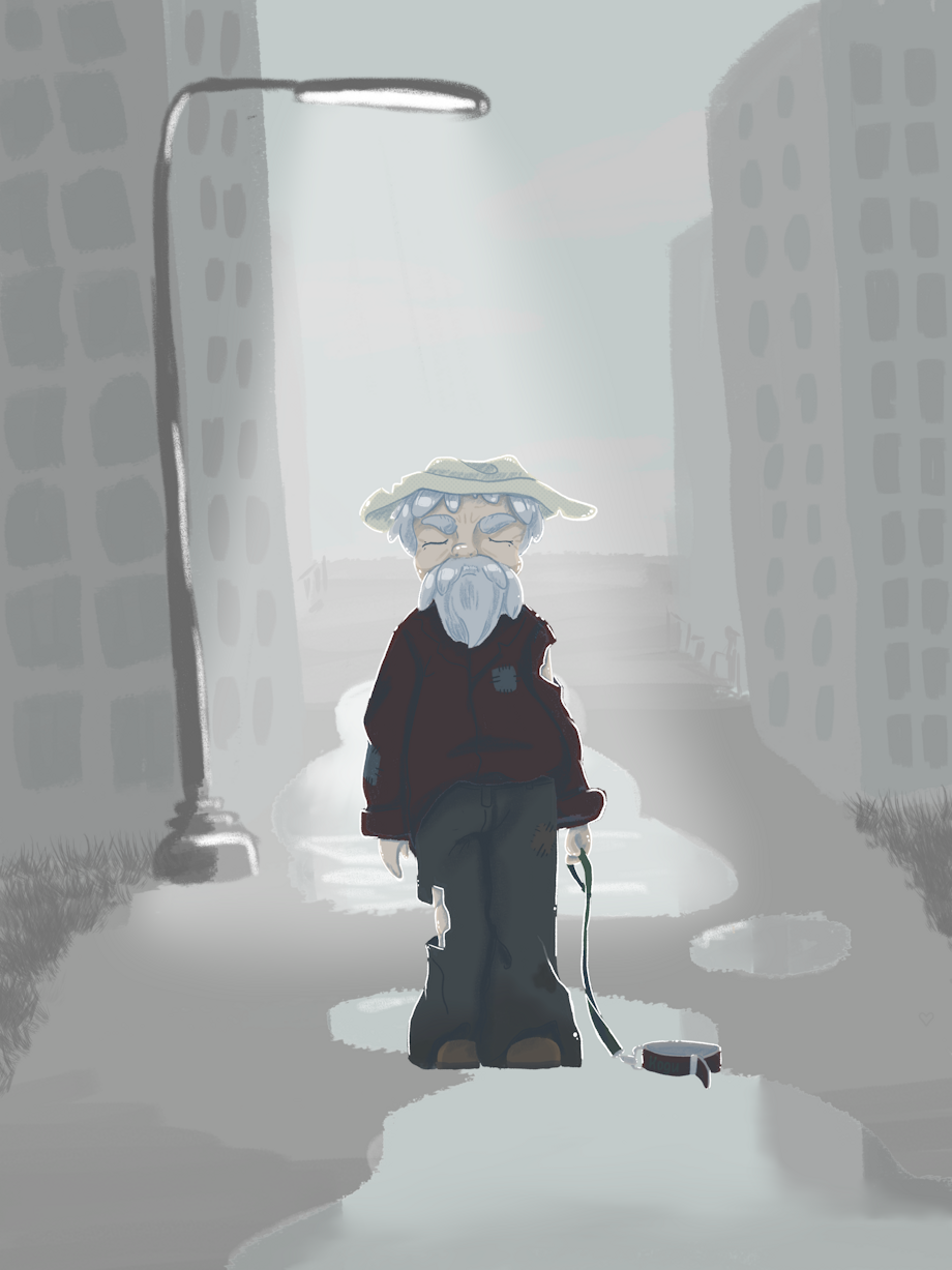 Drew this for a "broken tablet" chain, theme — loneliness. I was the first artist in the line, so no one knows who this is. But it’s an old man. And the dog isn't coming back. Still, he walks. Same street. Same time. Same silence. Waiting for someone. But there’s only a name left on the leash. He probably knows the end is near.
