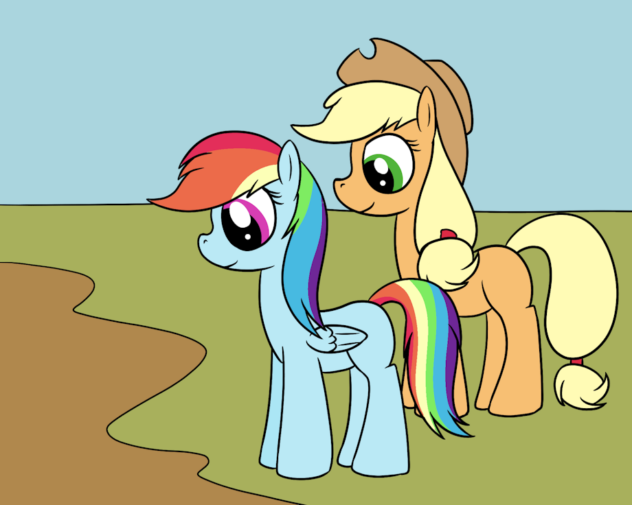 Rainbow Dash and Applejack going to play in the mud together. Both ponies are very exited to get down and dirty in the mud.