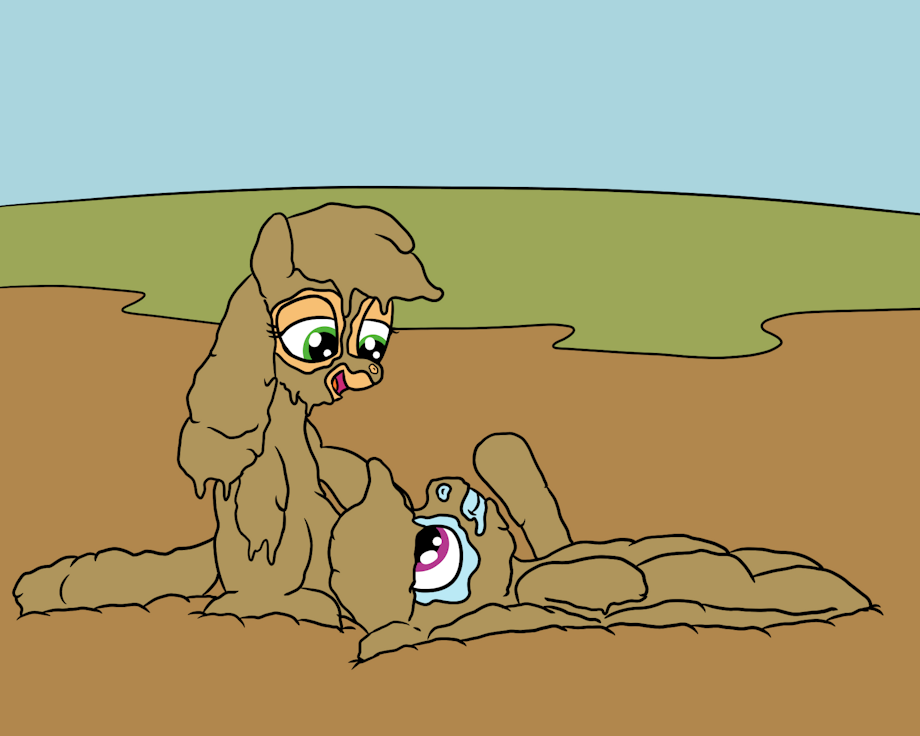 Rainbow Dash and Applejack going to play in the mud together. Both ponies are very exited to get down and dirty in the mud.