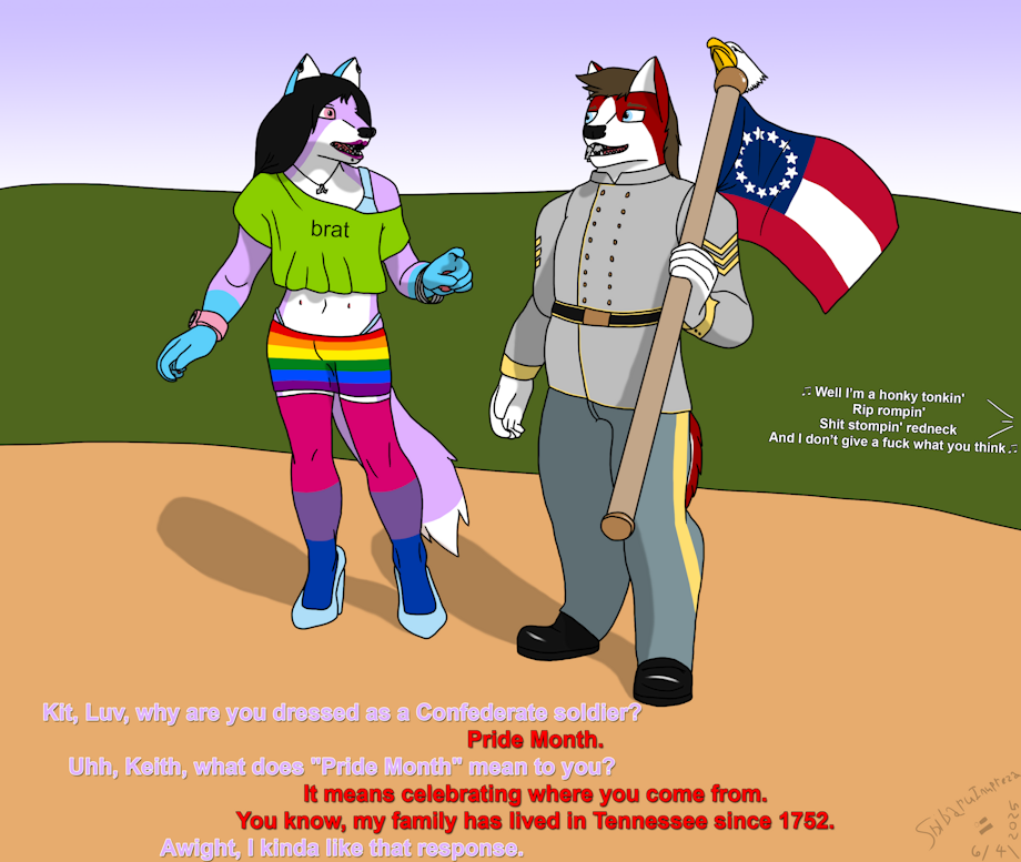 Apparently, for Pride Month, FurAffinity changed the banner on their new site to be a bunch of trans women. That will never do. If you visited my page over there a few days before this upload, you would have seen the plaintext banner I put up as a temporary measure to avoid having it on my page. Hurts my image, see? So, I reckoned it was finally time to take the power back and put my own banner up, based on the classic Fender design.