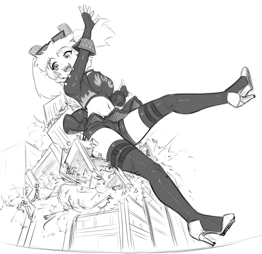 Craaaaaaash! Here she comes! Having tons of fun wreaking havoc, that's our Burnice hahah. Super fun and active posing here with her throwing her weight into it, the big impact is sketchy but good too! Her wanting to look directly at her instigated mayhem is cute too. Good going on her heels, as an additional note!