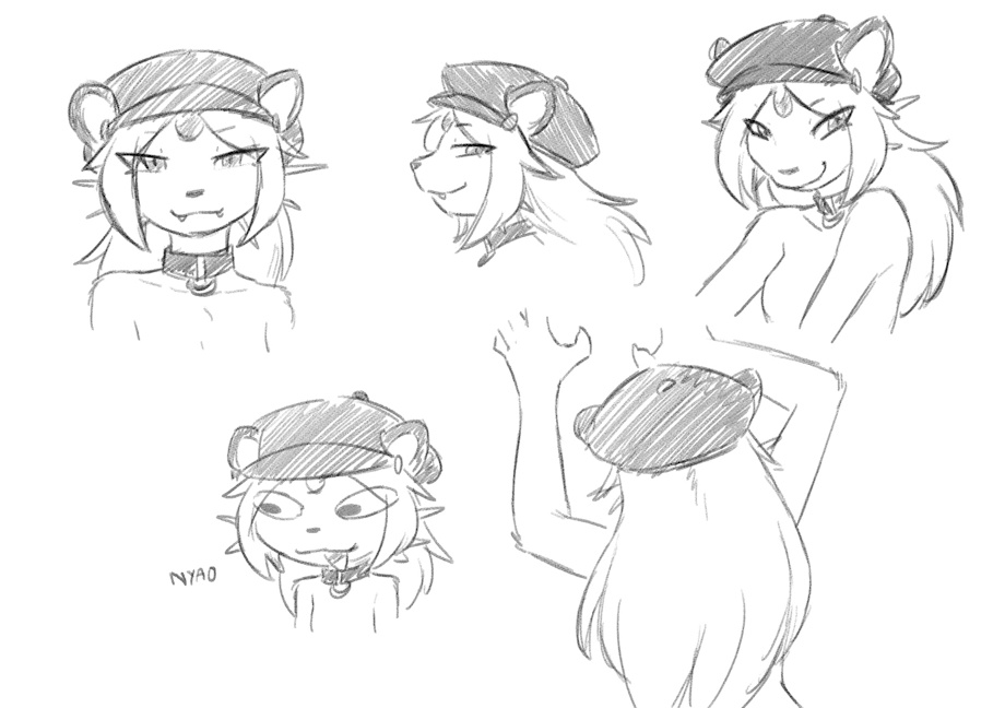I wanted to draw her cap more properly. So here's some doodles of Aria Nyaomi, the Pursian