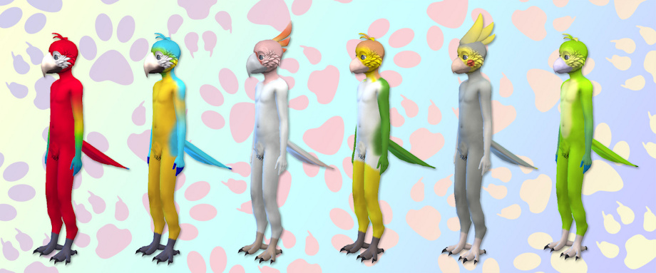 ○ Added 3 Legs Color tattoos, Avian Face tattoo, Beak Color tattoo, Furry Hair and Hairtips color tattoo.