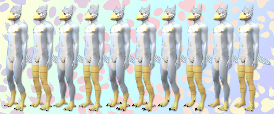 ○ Added 3 Legs Color tattoos, Avian Face tattoo, Beak Color tattoo, Furry Hair and Hairtips color tattoo.