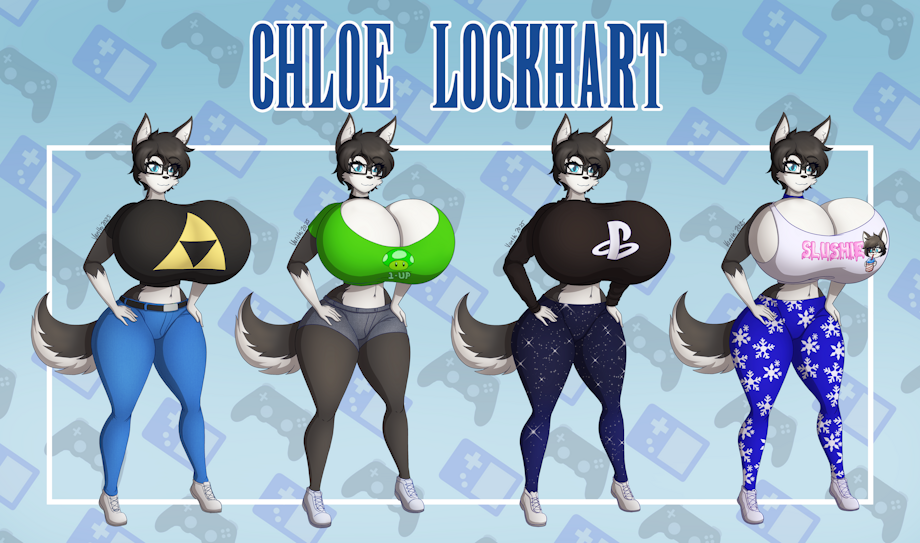 Chloe tends to have a lil more nerdy flair, with clothes that tend to have video game references. x3