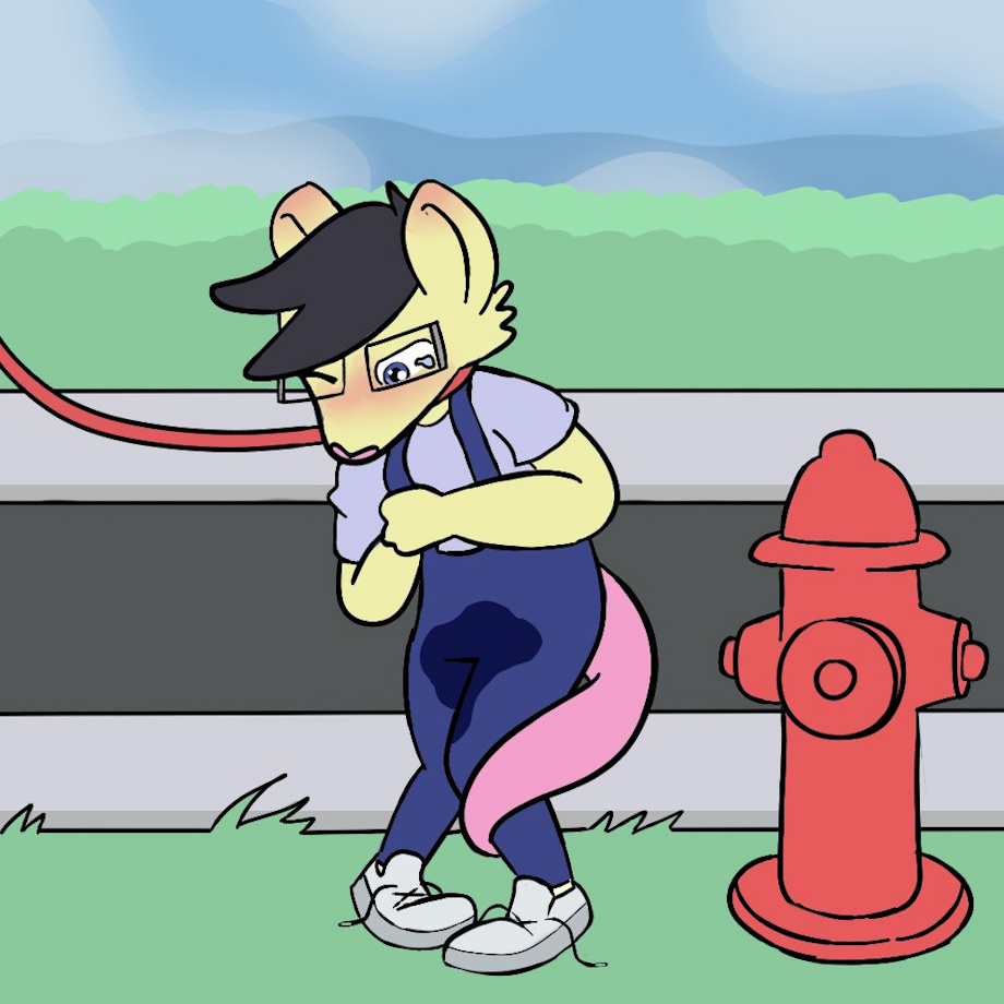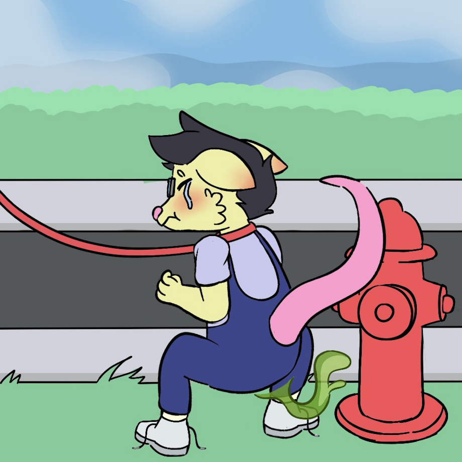 With puppy blood in his system, the opossum hybrid couldn't contain himself when he encountered the fire hydrant on a walk. Looks like he's in need for another change