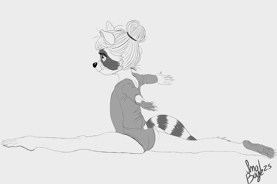 Flexibility is looking good as her leotard and bare feetpaws!