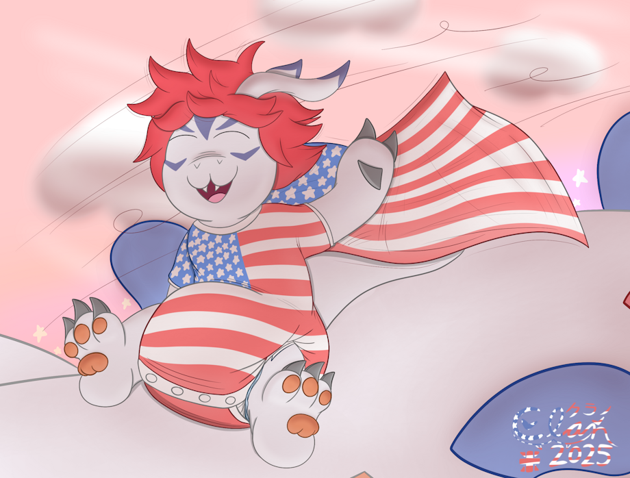 Flag cape onesies are such a vibe, especially when you're flying on a Lugia!