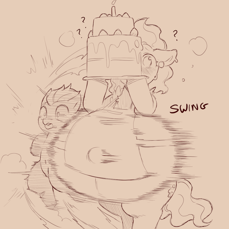 Cup Cake's teats must be like wrecking balls too if her belly is that destructive.