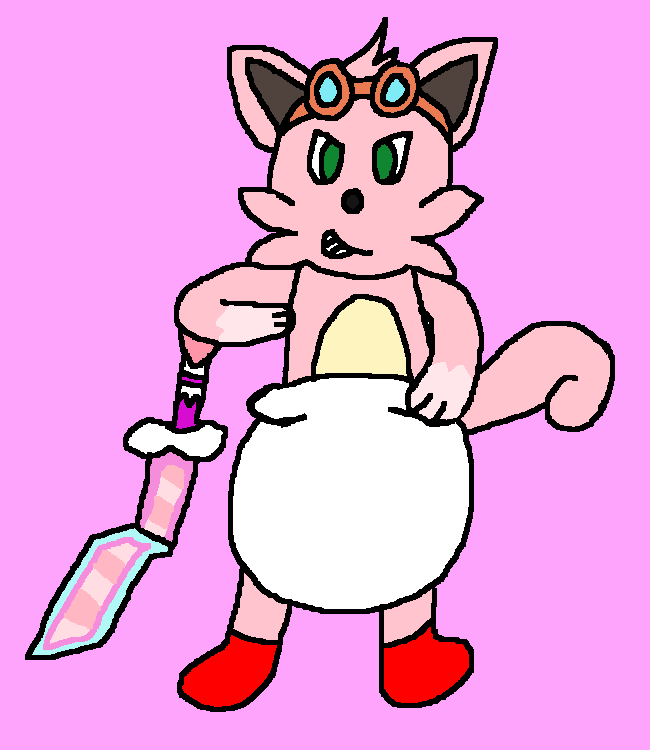I got this in an art trade from my friend @TailsLuigi-Dewott and it's my diaper wearing Cattiva Nibbles with his sword the Meowmere posing to look cool and cute.