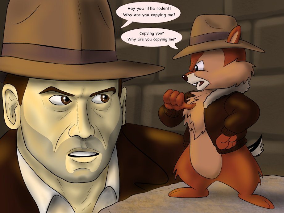 Who’s copying who. Looks like Chip and Indiana Jones are gonna have a show down. May the best man or munk win!