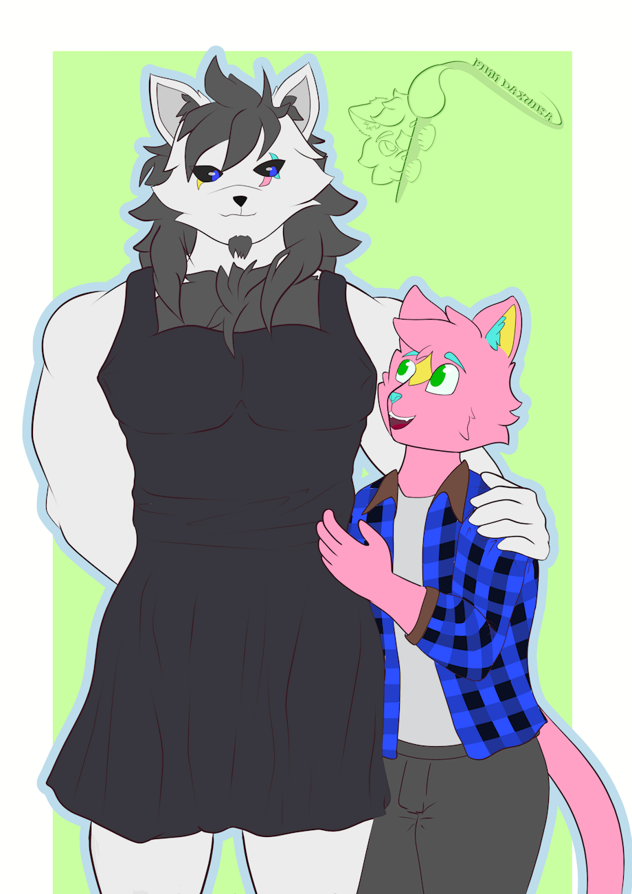 A serious wolf and a cheerful cat share a tender moment. No matter the difference in size, together they feel safe. //// Un lobo serio y un gato risueño se encuentran en un momento tierno. No importa la diferencia de tamaño, juntos se sienten seguros.