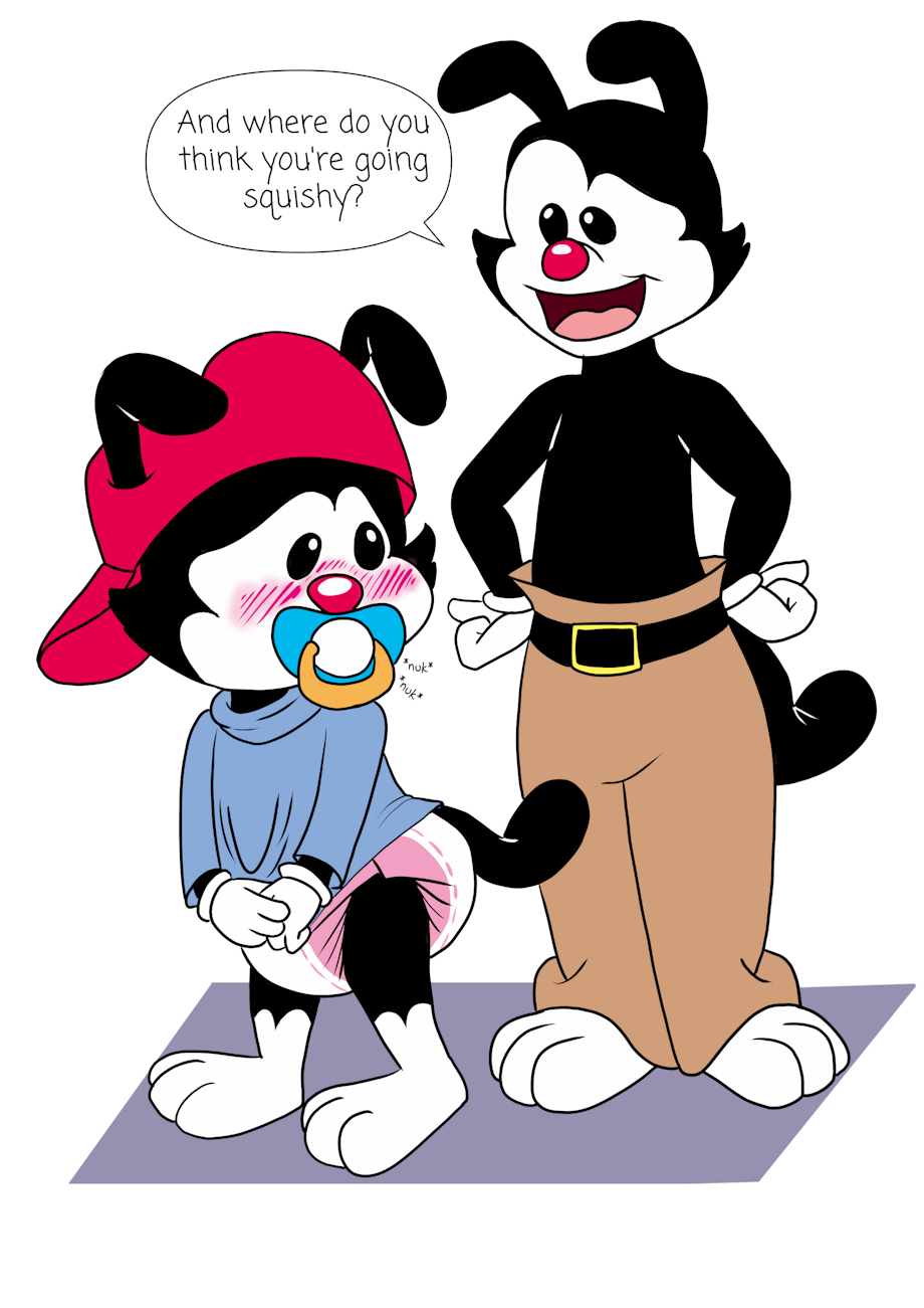 Haven't drawn one of my favorite diaper boys in a while. Looks like Wakko is trying to escape a diaper check but big brother Yakko is used to it so there's no escape.