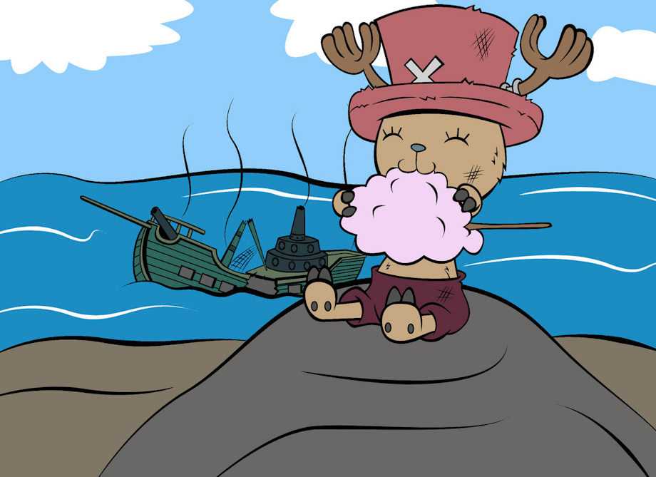 So during June, Reimon had a get one commission get one free deal where he'd draw one character and I choose Chopper from one piece, look at him enjoying is sweet cotton candy... ignore the drowning Marines in the sea they had it coming.