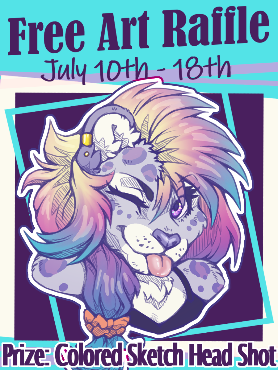 Free Art Raffle for July 2025! Available entry dates are from July 10th - 18th. Names will be drawn on July 19th. You must complete all entry requirements to enter. You can enter once per social media platform! Find me on BlueSky, DeviantArt, FurAffinity, and Tumblr.
