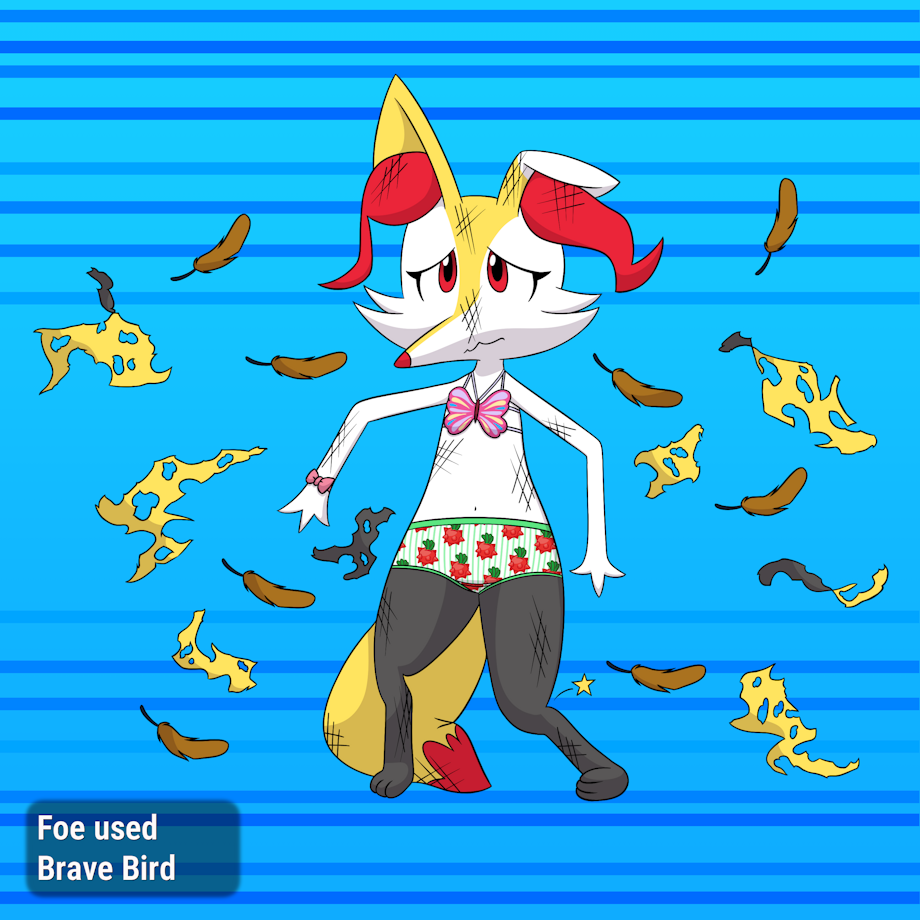 The third image in the set, 15 more designs to go. Didn't know how to best portray an attack like this. This time she got extra hurt after the attack. Don't worry, she won't be as hurt in future drawings.