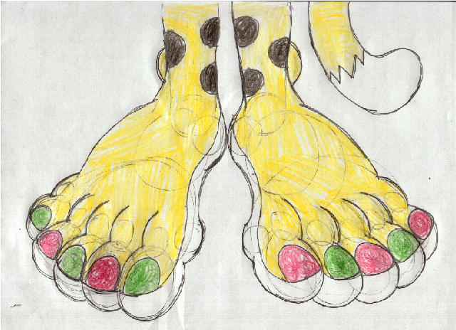 Here's a pic I drew of my Mobian OC gal Kathy the Cheetah's feet with red and green toenails for Christmas in July.