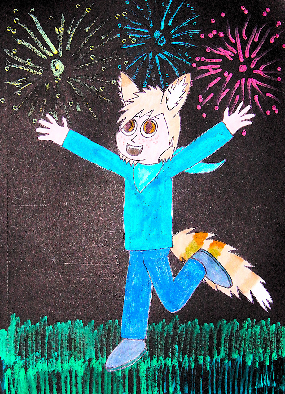 This Artfight attack featuring HazelTheVixen 's character Cody is also my attempt at a DeviantArt tutorial to draw fireworks and my entry in a contest sponsored by their group Traditionalists Hope it's good enough to win the the contest, and I hope you like it as well.