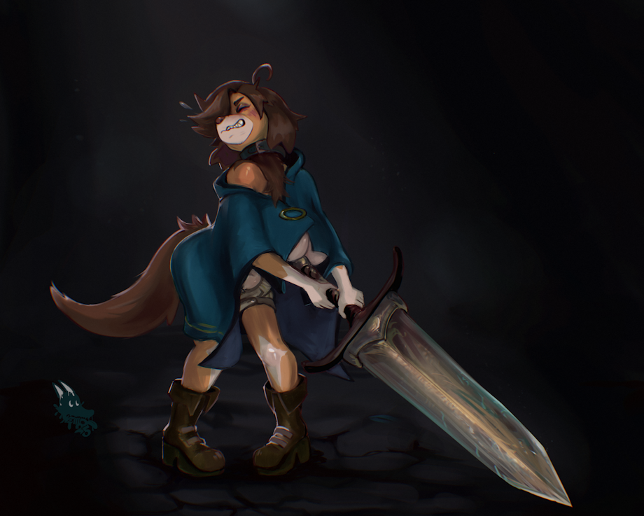 Haha yeah, it's the Moonlight Greatsword, although I based it a little more on the DS3 one than Elden Ring version. Either way that int requirement is going to be a problem for her.