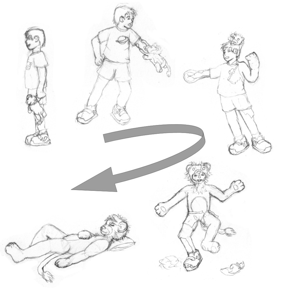 He was quite attached to his new toy. He carried the little lion plushie just everywhere! Then one day he found it was rather attached to him all of the sudden. In no time at all he found himself closer to it than ever before!