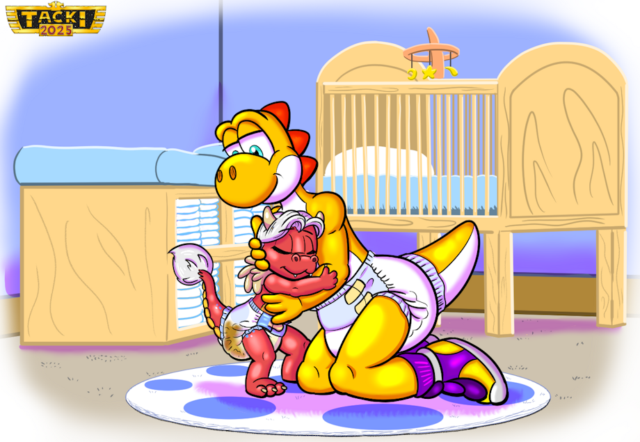 Showtime and Tacki hugging in the hatchy's room.
