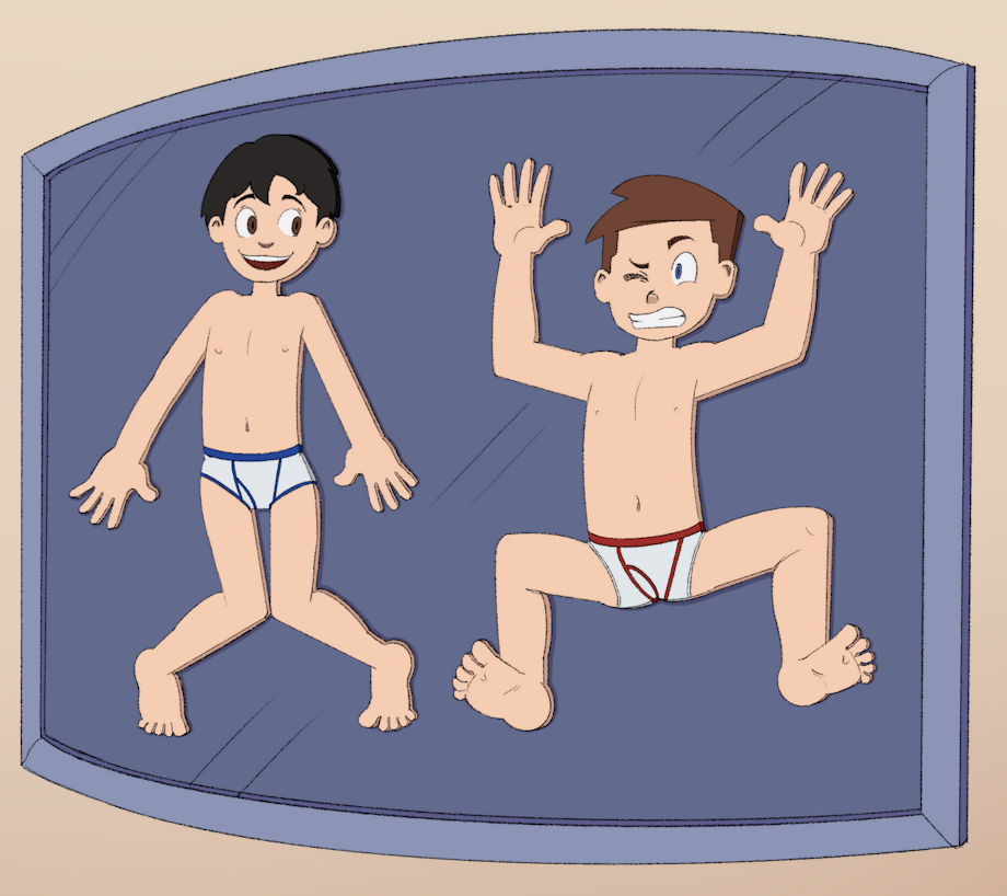 your profilepic makes me think of that frisk and kris would be cute as briefs boys and i kinda think it could be fun having my sona end up like that not as much the flat thing but if he ends up losing his clothes im all good as i love eum/enm