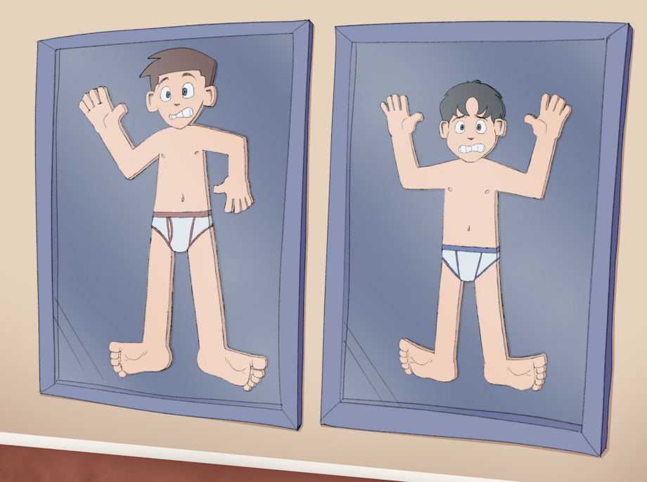Just as Arthur said that, two glass panels hidden in the ceiling slammed down around the boys. In an instant, Stanley and Arthur were trapped between two glass panes. Neither boy could move, both stuck in the position they were squished in. The curator came into the room to examine her newest display piece. She was very impressed with what she saw and knew that this was what she needed to attract more attention to her gallery.