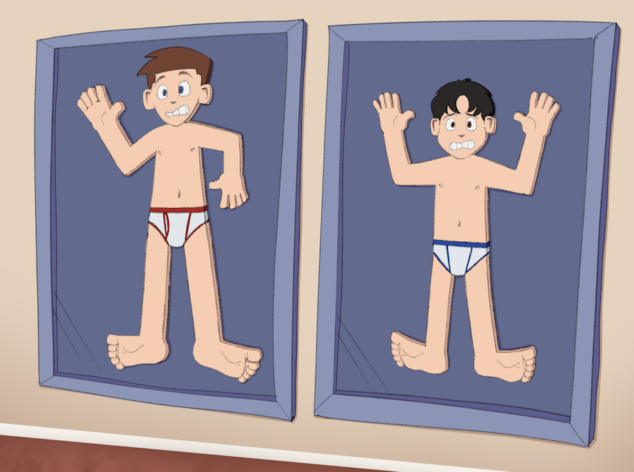 Just as Arthur said that, two glass panels hidden in the ceiling slammed down around the boys. In an instant, Stanley and Arthur were trapped between two glass panes. Neither boy could move, both stuck in the position they were squished in. The curator came into the room to examine her newest display piece. She was very impressed with what she saw and knew that this was what she needed to attract more attention to her gallery.