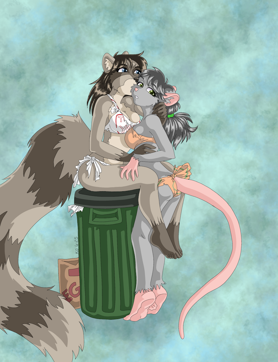 My pretty trash princesses in their grocery store bag bikinis! I liked this one. Also, I still have 3 unclaimed sketchbooks up for grabs. 24 full colors arts for 15 dollars a page!