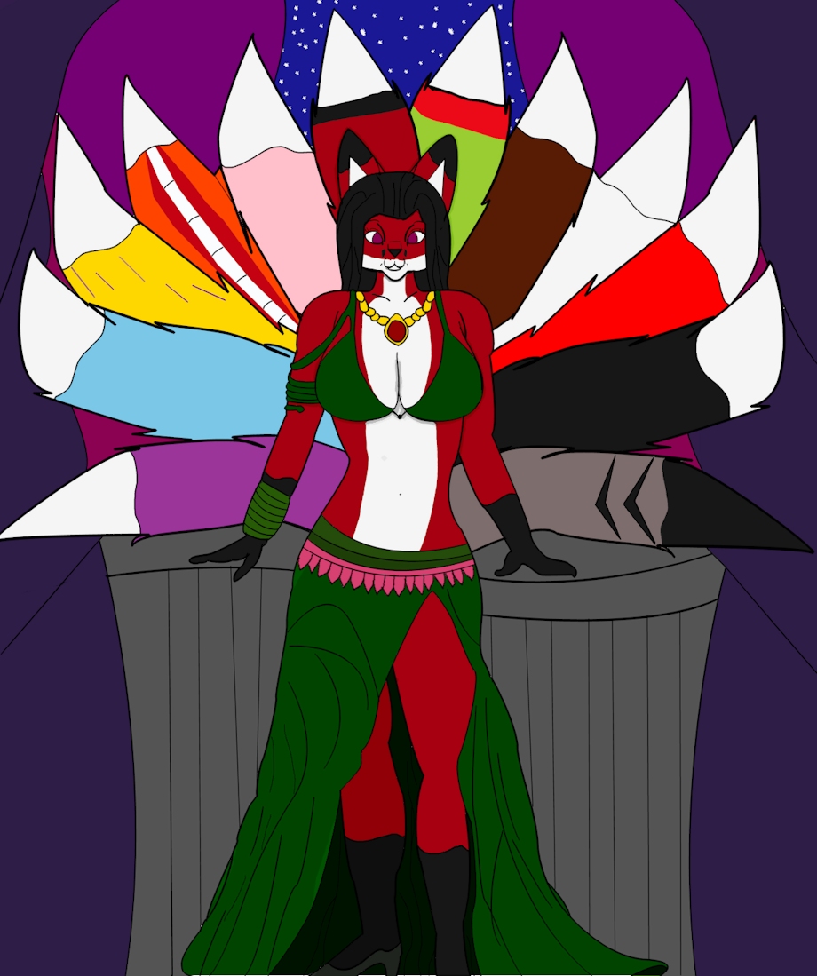 My goddess kitsune character as one of her tails except for the one that matches her fur color is for each of her children