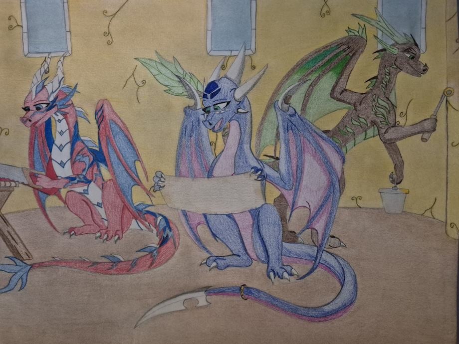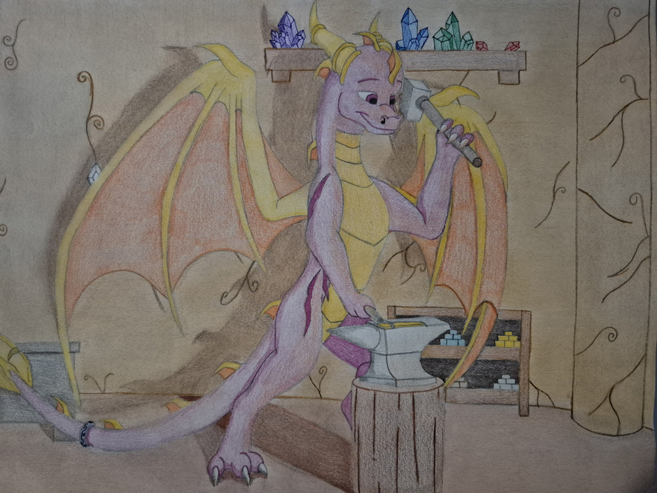 The harmonious sound of the hammer striking metal flowed with a humming coming from the dragon holding the hammer.