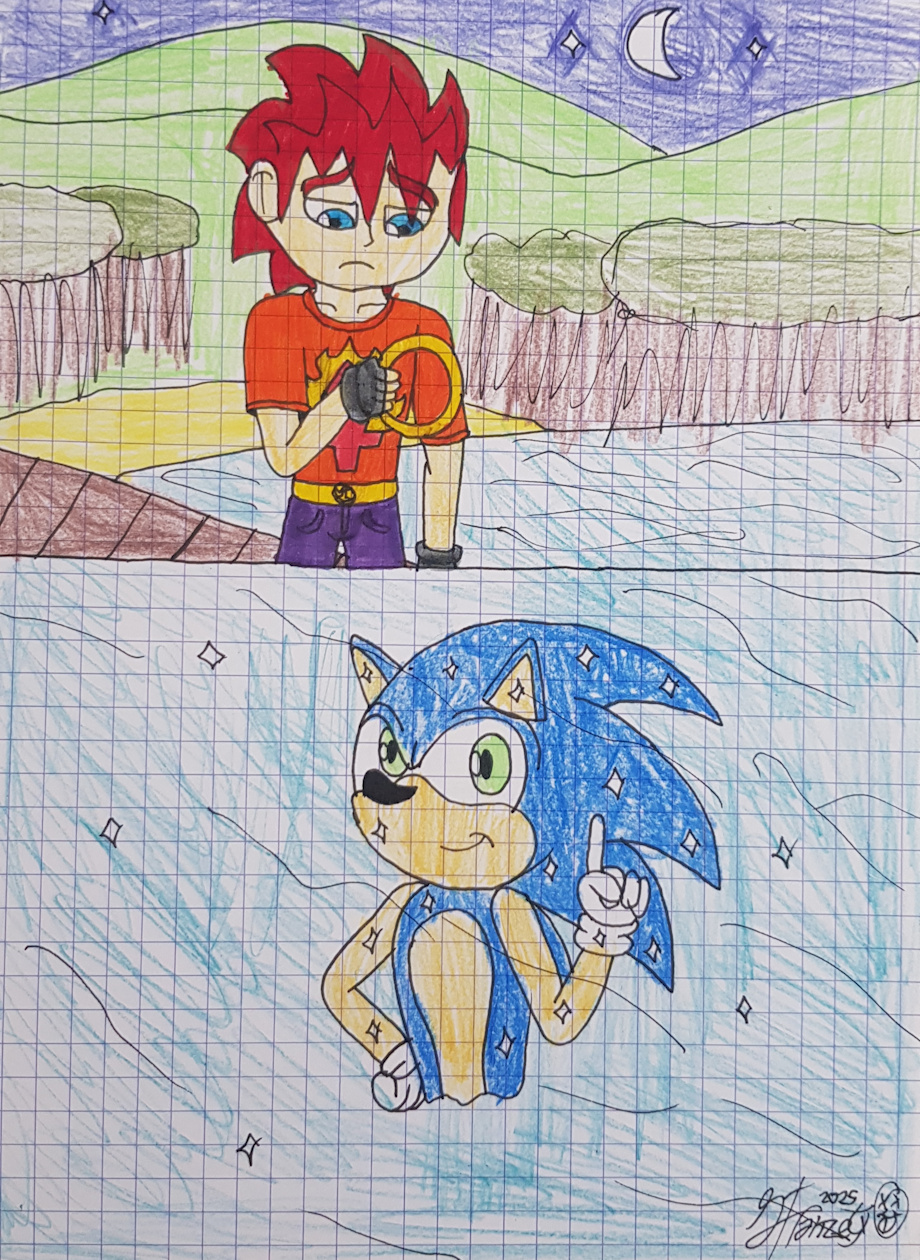 Mateo goes on a lakeside to mourns his friend Sonic the hedgehog by bringing a golden ring before throwing into a water.