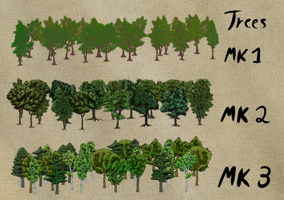 Then I created MK2. These trees are more detailed, but I can not adjust the colors so easily. But for now since I have no autumn look, it was okay. making it's first appearance on this page: