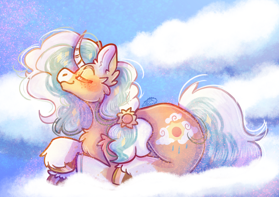 I think she's having a great rest on a cloud, even though she's a unicorn๐