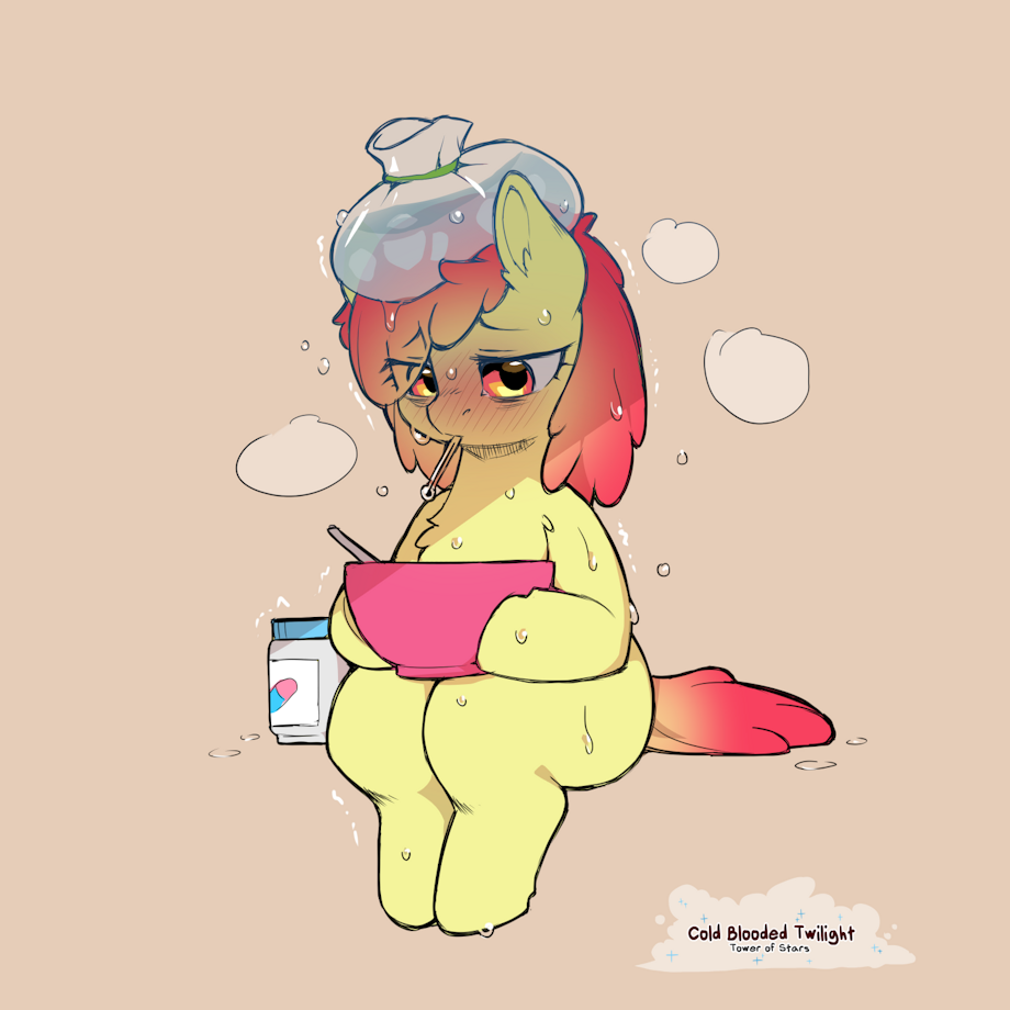 :-c I want to hug applebloom but yet, I can't. TmT Not in her condition. Rest easy Applebloom.