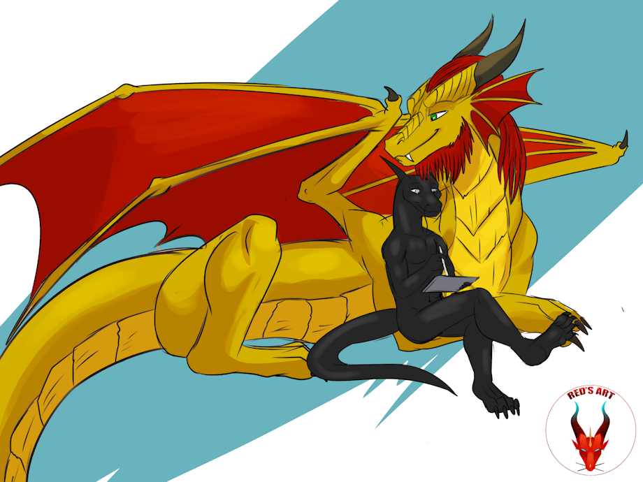 This is a birthday gift I got for Jinx I believe last year. Something nice, calm, and relaxing. Though Beo (the brass wyrm) is quite inaccurate here, not only in terms of size but build as well. He's kind of a twink here, when he should be much much bulkier, but eh. It was still a wholesome piece and I'm always happy to see more of our local gentle brass giant <3