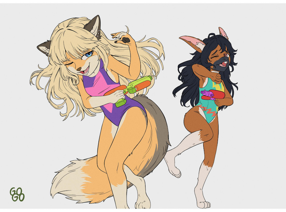 Thank you again for doing this for us! I'm simply in love with it and haven't stopped looking at it ever since you finished it! Everything about it is so beautifully done, the poses, those giddy expressions, the playful feel of it and the wonderful way the jets of water splash and spray everywhere, everything looks fantastic! The house and pool are lovely, too, and just the sort of suburban palace any kid could dream of. It's a fantastic picture and you were an absolute joy to commission. Thank you so, so much!