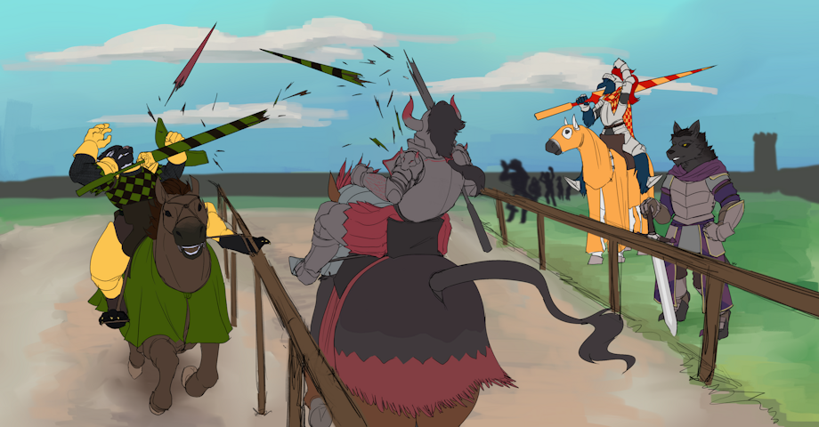 We have a full scale renaissance fair not too far from us, that as part of their standard program has 3 jousts a day 2 are practice bouts and the 3 is a full scale (scripted) match that ends the day other then a minor closing ceremony.