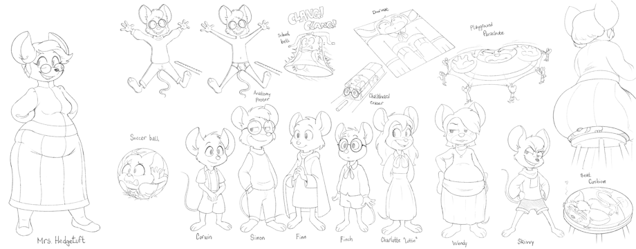 So I had this idea while talking with a friend for this concept for a cartoon/comic/story about a schoolhouse set in a forest colony of field mice! Mrs. Hedgetuft, an older and heftier mouse, is a beloved educator and does her best to provide the most enriching educational environment for her students that she can. That involves lots of creative projects, field trips, and other scholastic pursuits, but there's a problem; Being a forest colony of mice with limited resources, they often have to make due with that they've got.