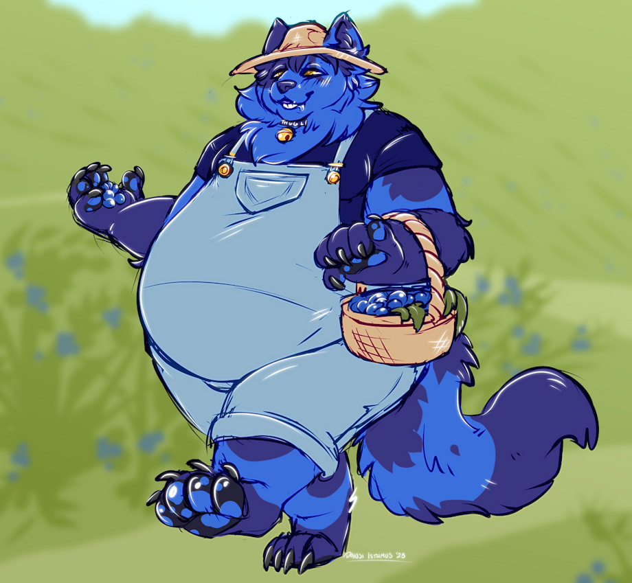 Banzai has eatin so many blueberries that he's gotten a big round belly! :3