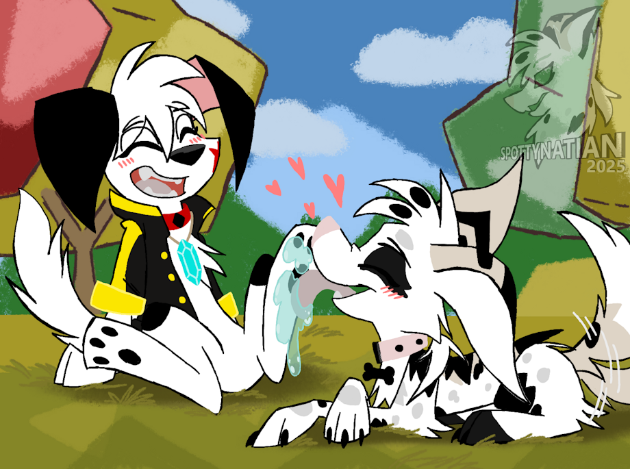 Reno and Akira have been getting along together very well. Both wolfdog puppies had become closer and closer until eventually Reno had noticed Akira's lovely paws. He couldn't help himself in licking his soft beans! Akira was ticklish at first but that quickly subsided and he enjoys his newfound friendo's friendly gesture.