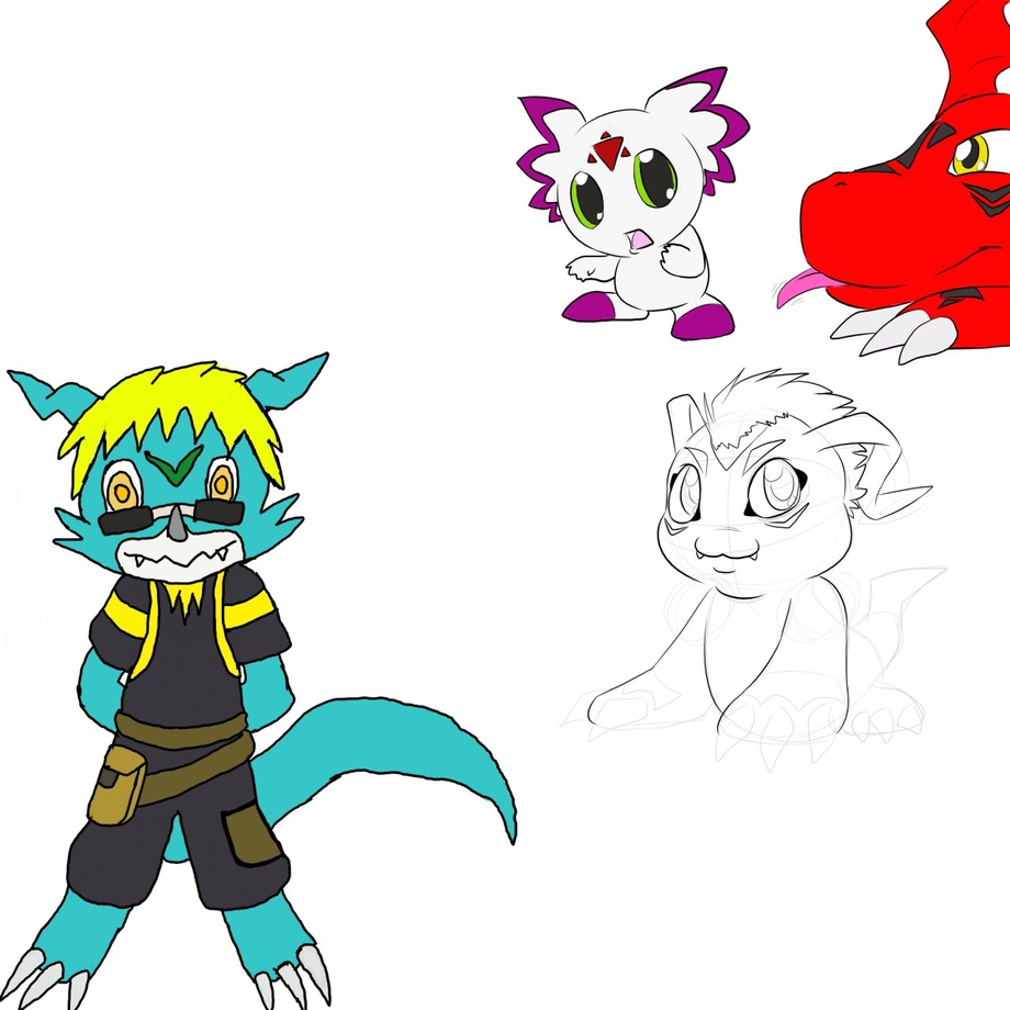 unfortunately i had to leave before much was drawn :C he did get to color th' stuffs ah drew tho X3~~