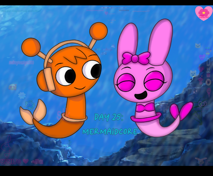For this day, I decided to make Oren and Pinki as mermaids in the ocean (I'll probably draw the rest of the characters as mermaids and sea creatures later) 🧜🧜♀️..