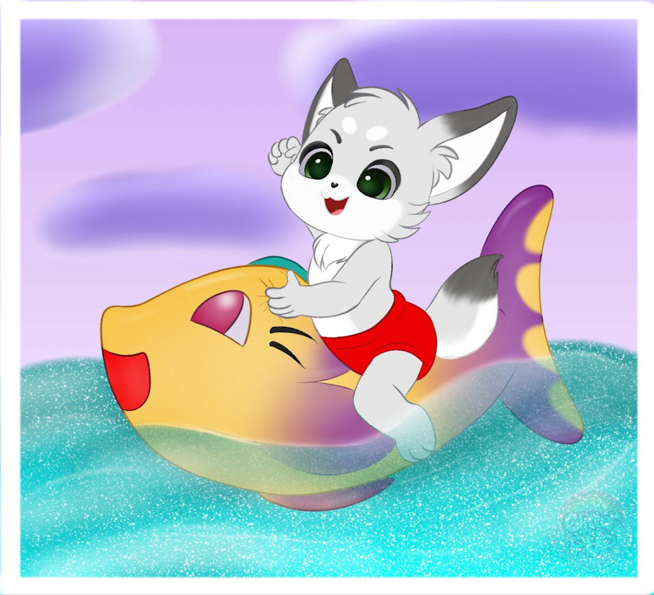 Dreg is having a fun time at beach on his inflatable toy! And the inflatable toy itself is an easter egg, can you guess where it cames from? (without spoiling it too much by the following copyright and tags)