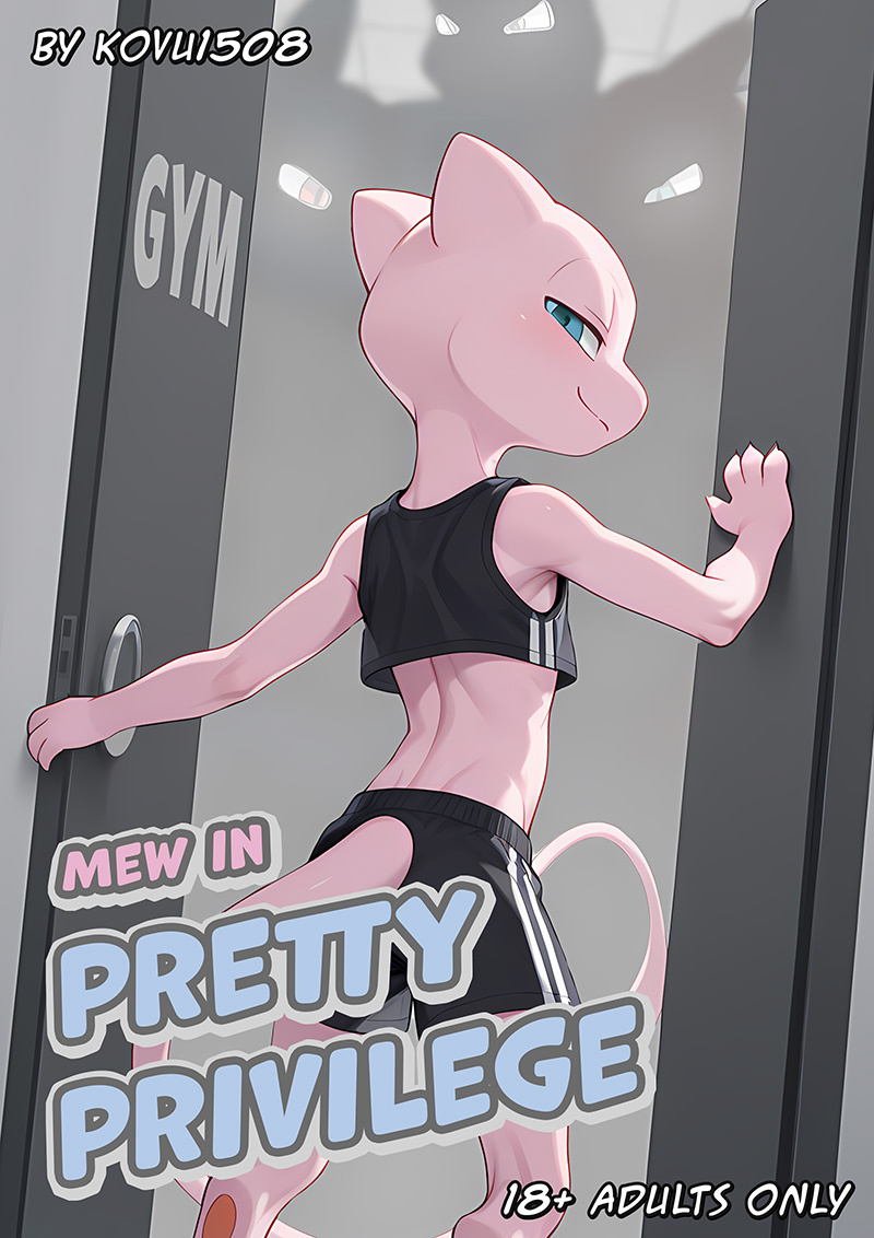 " | A young and sexy femboyish mew likes to go to the gym. The reason? Everyone there is obsessed with him, as he is one of the rarest pokemon ever... And mew knows that he can use his pretty privilege to have all kinds of fun with lots of different pokemon... until someone else shows up. |