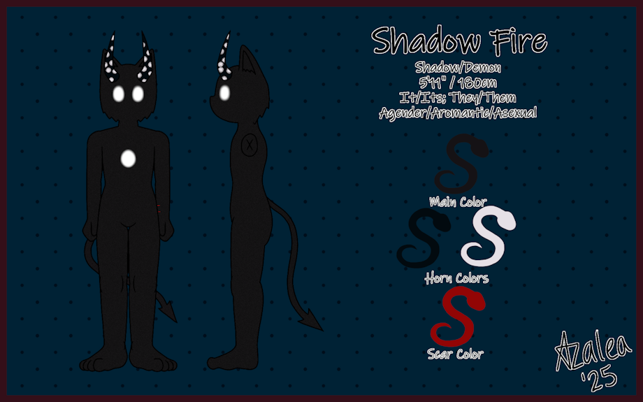 My headmate shadow decided it wanted a proper drawing of itself, and realized it changed its look quite a bit since the last time it was drawn. It's some sort of demon, maybe part cat. While most of its body is a fuzzy shadow, its horns look like snowflake obsidian.