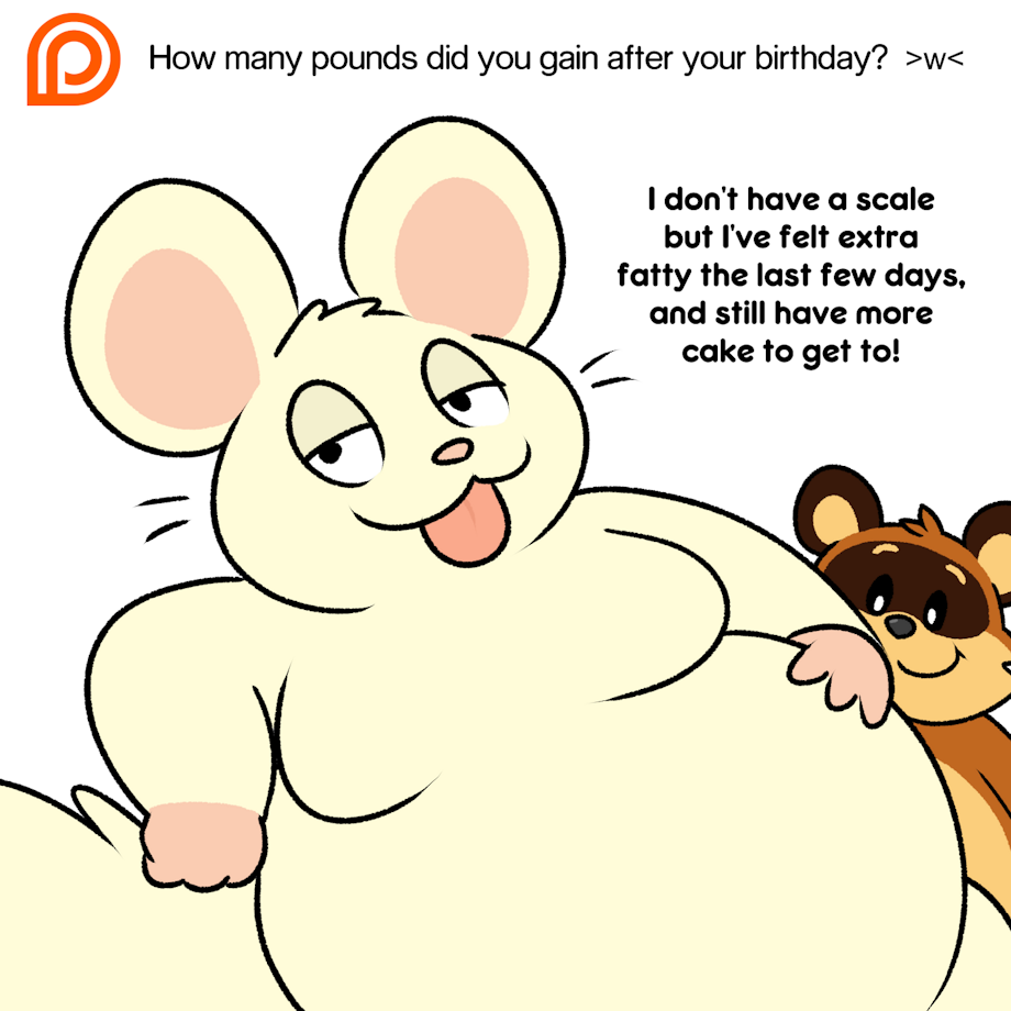 A question from Tanuki Koopa! I guess he knows I've been eating a lot lately! B3 But just how much bigger have I grown?